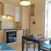 La camera da letto presenta un lussuoso letto king-size e lenzuola di alta qualità, garantendo notti riposanti. Nel soggiorno, un divano letto e una TV a schermo piatto offrono momenti di relax, mentre la cucina completa di microonde e forno è pronta per deliziosi pasti.